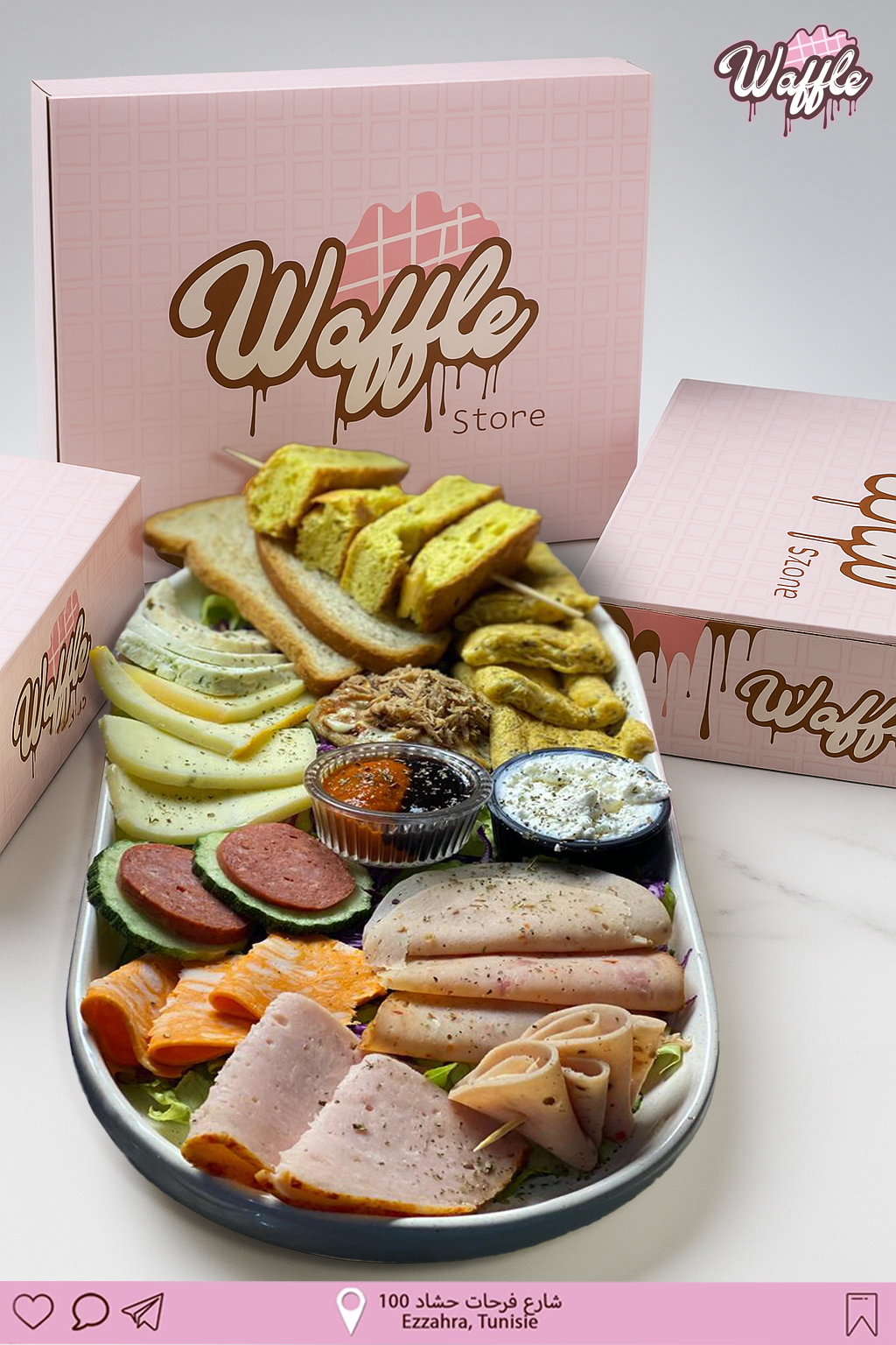 1 café,1/2 eau, jus,Plat charcuterie, omelette, mini pancake salé